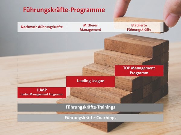 Unsere Führungskräfteprogramme, die jeweils aus mehreren Modulen bestehen, bieten eine bedarfs- und zielgruppengerechte Themenauswahl. Ein fester Teilnehmerkreis eröffnet die Chance zur Vernetzung, ermöglicht einen kollegialen Erfahrungsaustausch und bereichert den individuellen Lernprozess und -transfer.